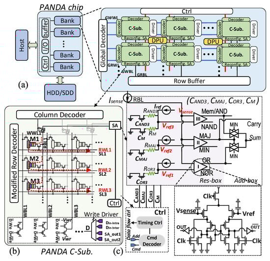 - Li, S.; Xu, C.; Zou, Q.; Zhao, J.; Lu, Y.; Xie, Y. Pinatubo: A processing-in-memory architecture for bulk bitwise operations in emerging non-volatile memories. In Proceedings of the 53rd Annual Design Automation Conference, New York, NY, USA, 5–9 June 2016; pp. 1–6. [Google Scholar]