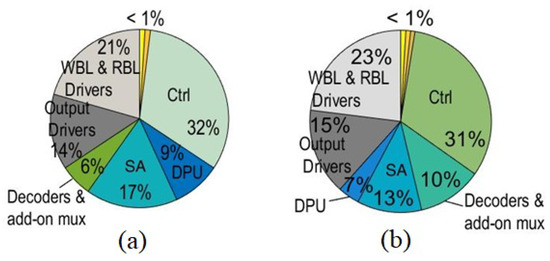 The breakdown of area-overhead in MAT level for (a) PANDA and (b) processing in SOT-MRAM platform [6].