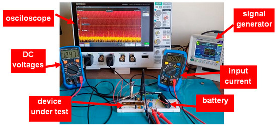 Figure 5 shows a photograph of the laboratory setup used during the experimental tests for measurements of the gain and noise of the LNA. The 1.2 V voltage supply is obtained by a battery to reduce the external interference. VCM is generated with the help of a potentiometer.