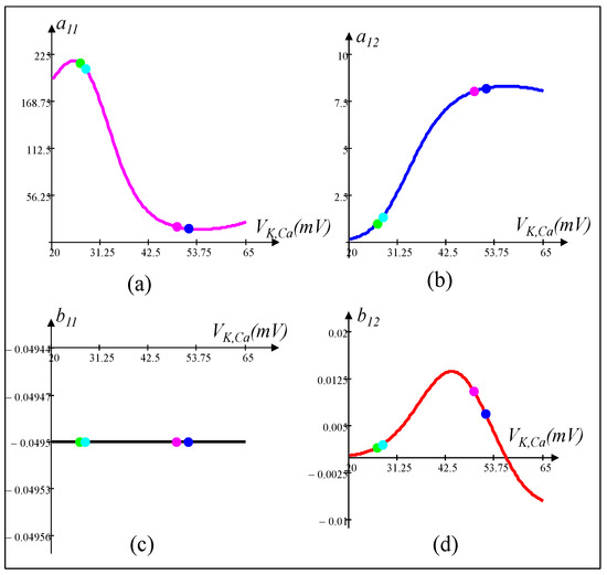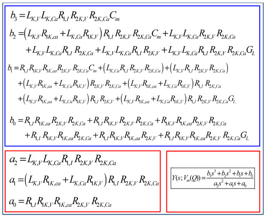 Similarly, expanding the state equation of Equation (23) in a Taylor series about the equilibrium point (Ca(Q,K,Ca), VCa(Q,K,ca)), we obtain