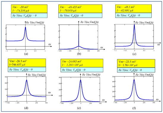 Observe from Table 3 and Figure 21a–c that two eigen values of the Jacobian matrix associated with the ODE set Equations (1)–(3) lie on the open RHP for each operating point Q corresponding to a DC current I value between Hopf bifurcation point 1 and Hopf bifurcation point 2. Therefore, the generation of periodic, bursting, spikes, and chaos signals predicted by the Hopf bifurcation theorem in an excitable cell exists over the following interval: