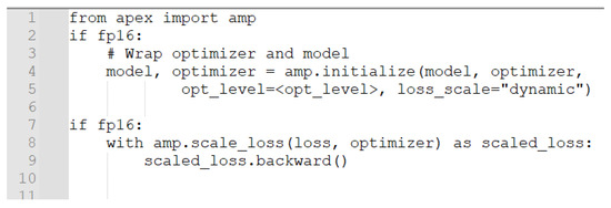 Major machine learning frameworks like PyTorch and TensorFlow have seamlessly integrated the mixed precision feature into their frameworks, facilitating the implementation of automatic mixed precision with just a few lines of code, as illustrated in Figure 5 and Figure 6. For further customization, the mixed precision method can be manually added to different sections or lines of code.