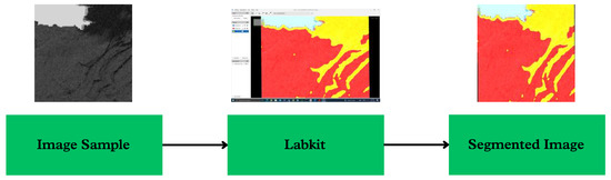 Before initiating the model training, we generated ground truth labels for the CSIRO Sentinel dataset, marking a notable achievement due to the dataset’s substantial size. As the dataset comprised unlabeled images, we employed LabKit software [28] to label the images manually. LabKit, an open-source tool, facilitates semi-manual image segmentation through selected samples and a random forest algorithm. The segmentation output from LabKit is in TIFF format, which prompted us to extract cropped images (mask) of the segmented samples. Subsequently, we resized these cropped images in paint software to obtain the final output, as illustrated in Figure 7.