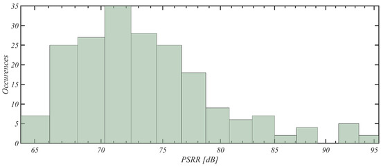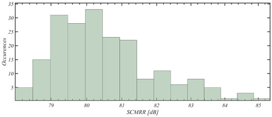 Concerning the SCMRR and PSRR, histograms related to the distribution of results over the 200 Monte Carlo iterations are presented in Figure 14 and Figure 15.