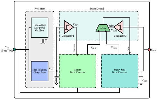 - Goeppert, J.; Manoli, Y. Fully Integrated Startup at 70 mV of Boost Converters for Thermoelectric Energy Harvesting. IEEE J. Solid State Circuits 2016, 51, 1716–1726. [Google Scholar] [CrossRef]