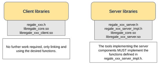 The REGALE Library offers each HPC PowerStack actor a pair of client and server libraries that define their respective interfaces. These interfaces are internally called the core layer methods. The client–server libraries are illustrated in Figure 3. If a tool aims to be compliant with the REGALE Library, it must either call the proposed API (client side) or implement the defined “interfaces” for the server side, which manage the behavior of the callback used upon data receipt. The agent compliant with the client part of this layer has to achieve the following: