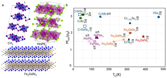 - Zhang, G.; Guo, F.; Wu, H.; Wen, X.; Yang, L.; Jin, W.; Zhang, W.; Chang, H. Above-room-temperature strong intrinsic ferromagnetism in 2D van der Waals Fe3GaTe2 with large perpendicular magnetic anisotropy. Nat. Commun. 2022, 13, 5067. [Google Scholar] [CrossRef] [PubMed]
