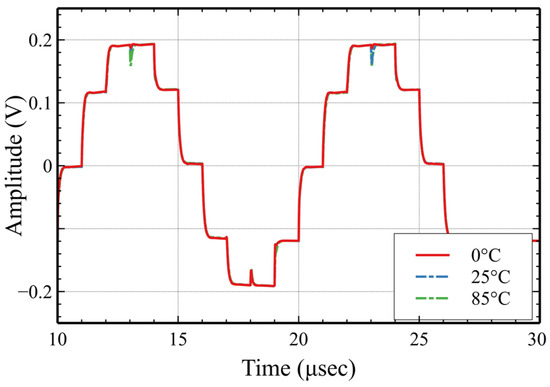 Temperature corner simulation with a 50 mVp 100 kHz sinusoidal input that has a 30 mV offset.