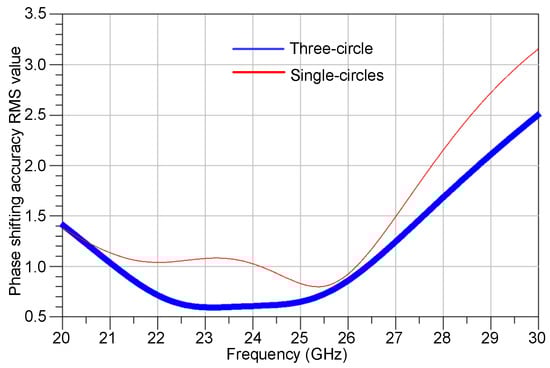 - Tsai, J.-H.; He, T.-T.; Lin, W.-H. A K/Ka-Band Low RMS Phase Error 5-Bit CMOS Phase Shifter. In Proceedings of the 2021 IEEE International Symposium on Radio-Frequency Integration Technology (RFIT), Hualien, Taiwan, 25–27 August 2021; pp. 1–3. [Google Scholar] [CrossRef]