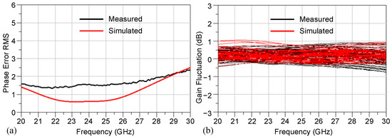 (a) RMS phase error and (b) gain fluctuation results at room temperature.