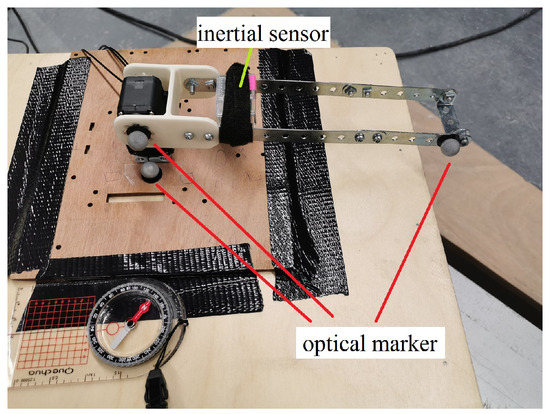 Acquisition of movement of the robotic arm using optical markers and the tested inertial device.