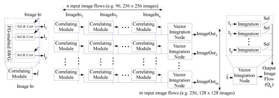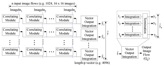 Implementing additional layers of convolutional NN blocks (Figure 11 and Figure 12) requires the combination of input image streams from previous convolutions and creating, through convolutions and nonlinear operations, a set of output image streams. A two-dimensional array of image stream convolutional blocks enables this computation, where signal aggregation occurs over a row of blocks instead of a single block.