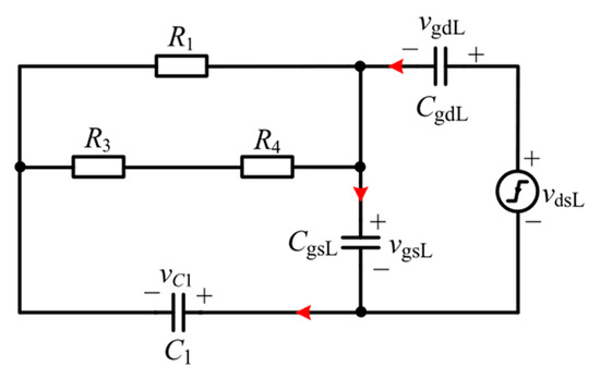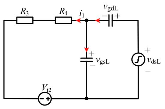 where a is the rate of change of vdsL [22], vgsL and vgdL are the gate-source and gate-drain voltages of eGaNL, respectively, CgsL is the gate-source capacitance, and vgL is the voltage of the eGaNL driver IC.