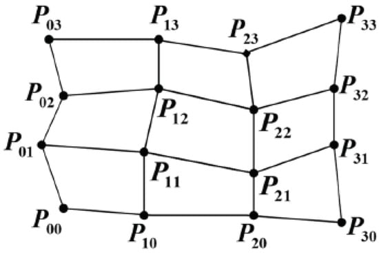 Terrain modeling constitutes the foundational step in three-dimensional coverage path planning. Digital Elevation Models (DEMs), which employ elevation values for discrete spatial points, are commonly used to represent the underlying terrain surface. To obtain a continuous surface representation, interpolation techniques—such as Kriging—are applied to estimate the elevations at unsampled locations based on the available DEM data. However, such methods provide elevation data only at discrete sampling points. To achieve a more continuous and analytically tractable representation of topographic surfaces in three-dimensional space, analytical models can be derived from DEMs. These models facilitate terrain characterization, which is critical for accurately estimating the cost associated with various coverage patterns. Polynomial functions are often employed for curve and surface fitting due to their capability to smoothly approximate known data points. Nonetheless, when the approximation domain spans a large interval, high-degree polynomials are required, which may lead to numerical instability and increased computational complexity. By contrast, the degrees of splines are decided only by the number of control points, while they contains favorable recurrence characters for situations at higher degrees. In particular, Bezier splines (surface, as shown in Figure 2) pass through the starting and ending points while approximating the remaining control vertexes, and thus Bezier surfaces were employed to build the digital surface model in this work.