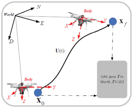 where N represents the number of UAVs to be deployed, K is the path number of each UAV, and L denotes the energy cost of a piecewise path (energy consumed by sensors is also included). Since UAVs have six degrees of freedom in translation and rotation, this gives rise to a flexible and varying path even for a fixed starting and ending pose state. As a result, path parameters such as flight time and energy consumption vary significantly under different flight paths. Therefore, it is indispensable to optimize the input control variables in order to minimize the cost function L.