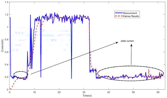 The static current profile of the UAV in idle mode, with Kalman-filtered results.