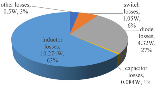 The loss distribution of each part of the proposed converter is shown in Figure 8.