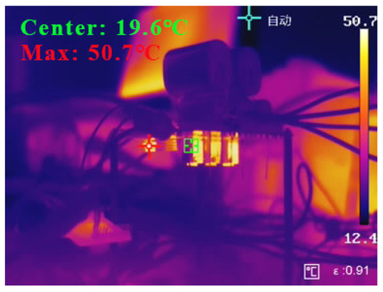 Thermal images of the converter during rated operation are presented in Figure 10. As indicated by thermal imaging analysis, the heat dissipation is mainly concentrated on the switching components. A peak temperature of 50.7 °C was recorded at the hottest location.