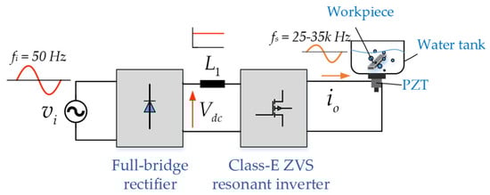 - Niyomthai, S.; Sangswang, A.; Naetiladdanon, S.; Mujjalinvimut, E. A predictive control of class E resonant inverter for ultrasonic cleaners. In Proceedings of the IECON 2017—43rd Annual Conference of the IEEE Industrial Electronics Society, Beijing, China, 29 October–1 November 2017; pp. 6319–6324. [Google Scholar]