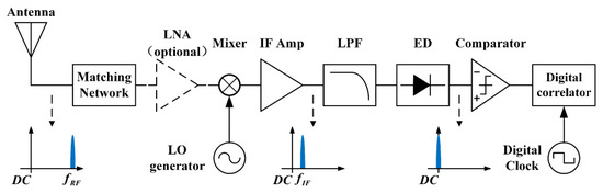 - Huang, X.; Dolmans, G.; De Groot, H.; Long, J.R. Noise and Sensitivity in RF Envelope Detection Receivers. IEEE Trans. Circuits Syst. II Express Briefs 2013, 60, 637–641. [Google Scholar] [CrossRef]