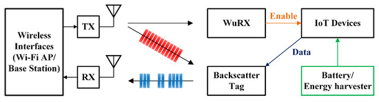 Beyond the physical layer, WuRXs play a vital role in system-level performance. By reducing the idle-listening power from milliwatts to nanowatts, they enable aggressive duty cycling, enhance network scalability, and extend the lifespan of battery-powered or energy-harvesting devices. Moreover, WuRXs allow asynchronous communication without pre-negotiated schedules, simplifying MAC-layer design and reducing latency in event-driven sensing systems. In some scenarios, such as implantable medical devices or massive-scale environmental monitoring, WuRXs are not just desirable but essential for practical system deployment. WuRX can also be integrated with backscatter modulation techniques to build ultra-low-power IoT nodes. In such architectures, the WuRX monitors wireless signals and triggers the backscatter transmitter upon detecting a specific wake-up packet. Unlike active radios, backscatter communication reflects and modulates incident RF signals by dynamically adjusting the antenna impedance, eliminating the need for power-hungry RF transmission. This architecture presents a promising pathway for future energy-constrained wireless systems.