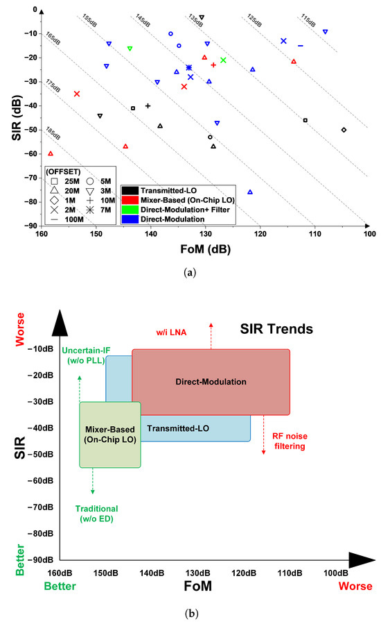 (a) SIR versus normalized FoM. (b) SIR trends across different architectures.