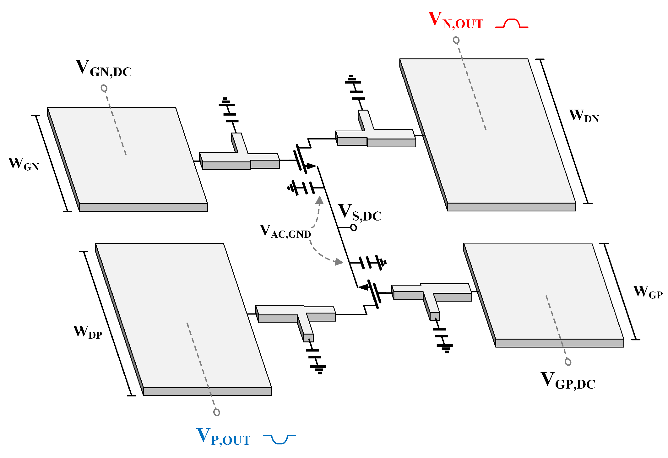 - Bassirian, P.; Duvvuri, D.; Truesdell, D.S.; Liu, N.; Calhoun, B.H.; Bowers, S.M. 30.1 A Temperature-Robust 27.6nW −65dBm Wakeup Receiver at 9.6GHz X-Band. In Proceedings of the 2020 IEEE International Solid-State Circuits Conference—(ISSCC), San Francisco, CA, USA, 16–20 February 2020; pp. 460–462. [Google Scholar] [CrossRef]