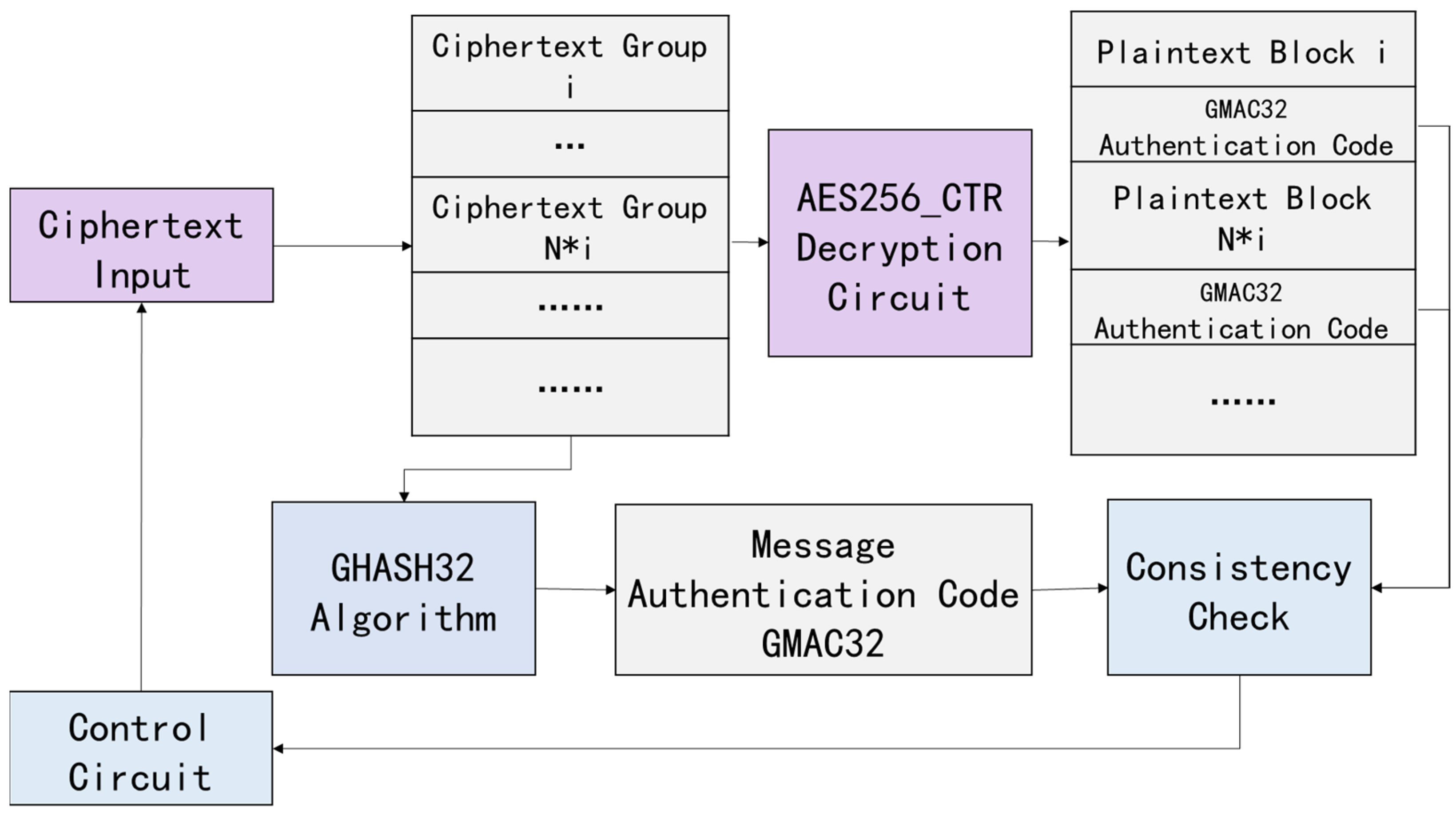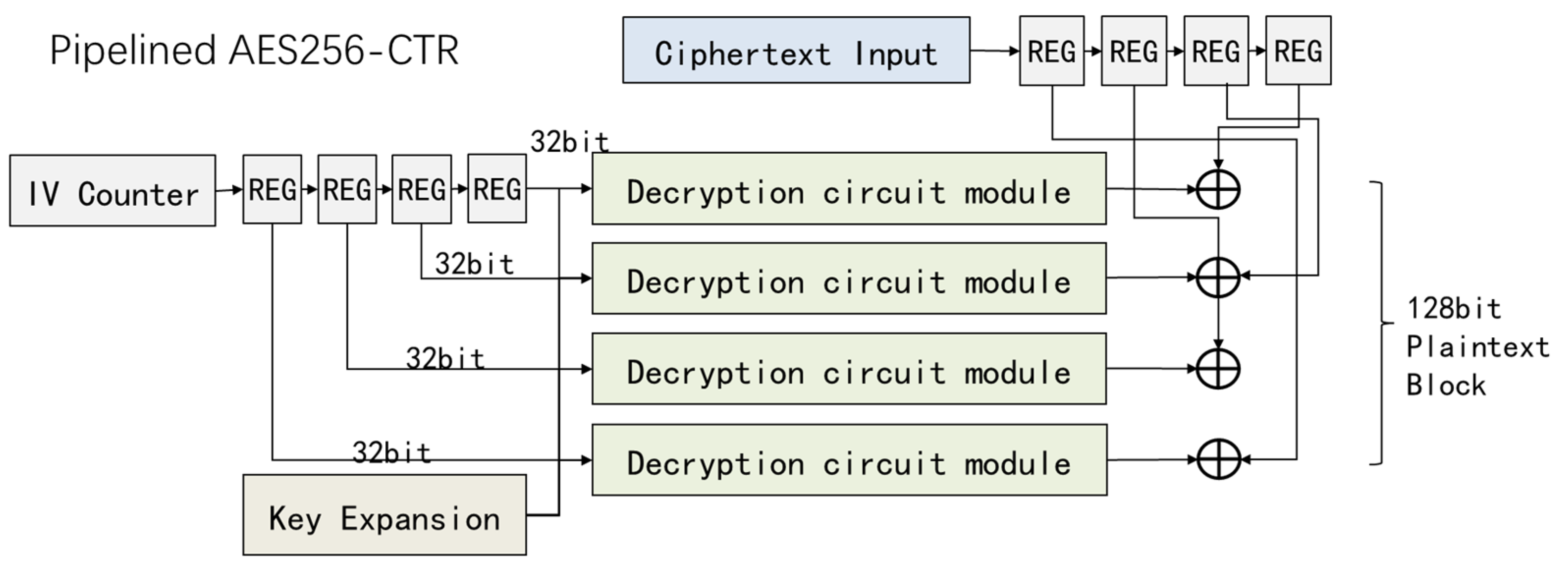 - Zhang, Y.; Zhou, J.; Tai, Y.; Cai, H.; Wang, S.; Xiao, K.; Zhang, X.; Dong, H.; Du, Z. Efficient and high-security FPGA configuration bitstream cryptographic algorithm and implementation. Integr. Circuits Embed. Syst. 2025, 25, 48–57. [Google Scholar] [CrossRef]