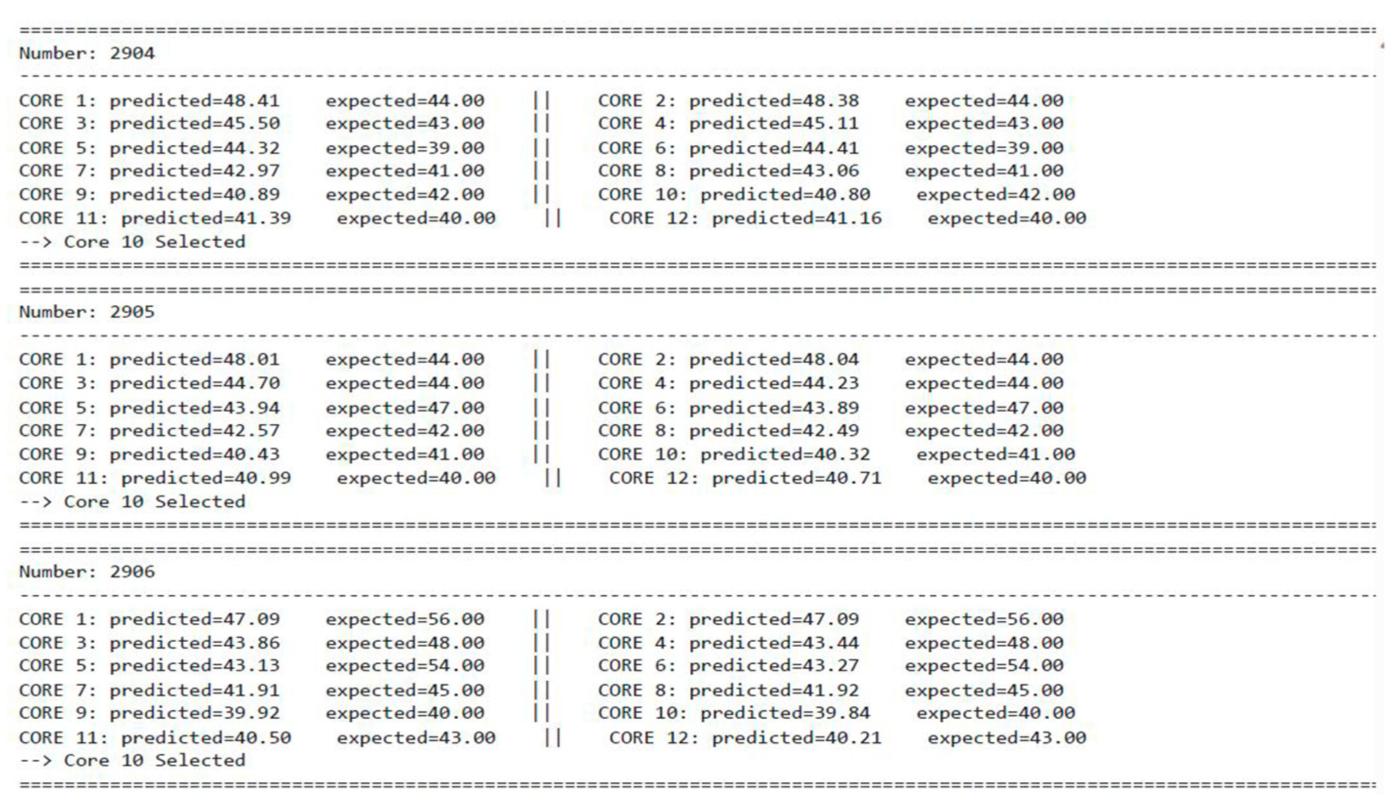 | Core No. | 1 | 2 | 3 | 4 | 5 | 6 | 7 | 8 | 9 | 10 | 11 | 12 |