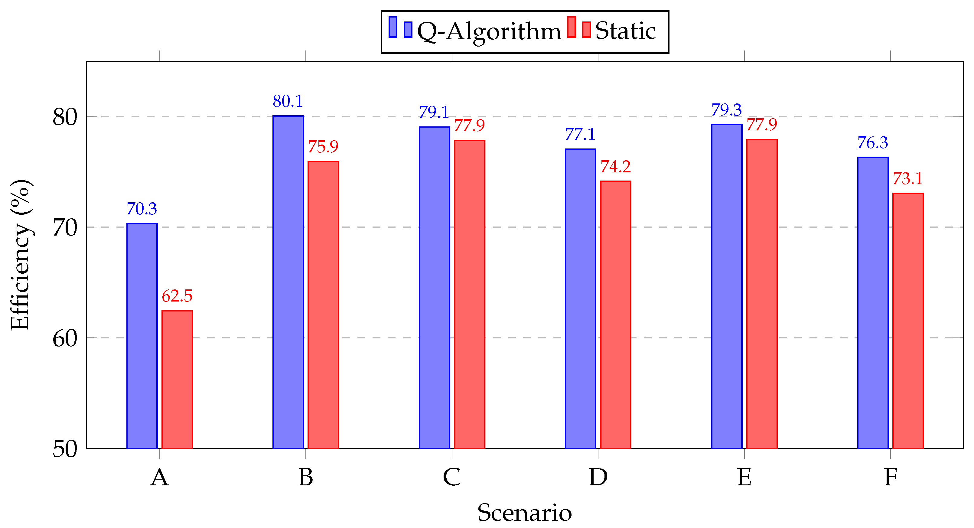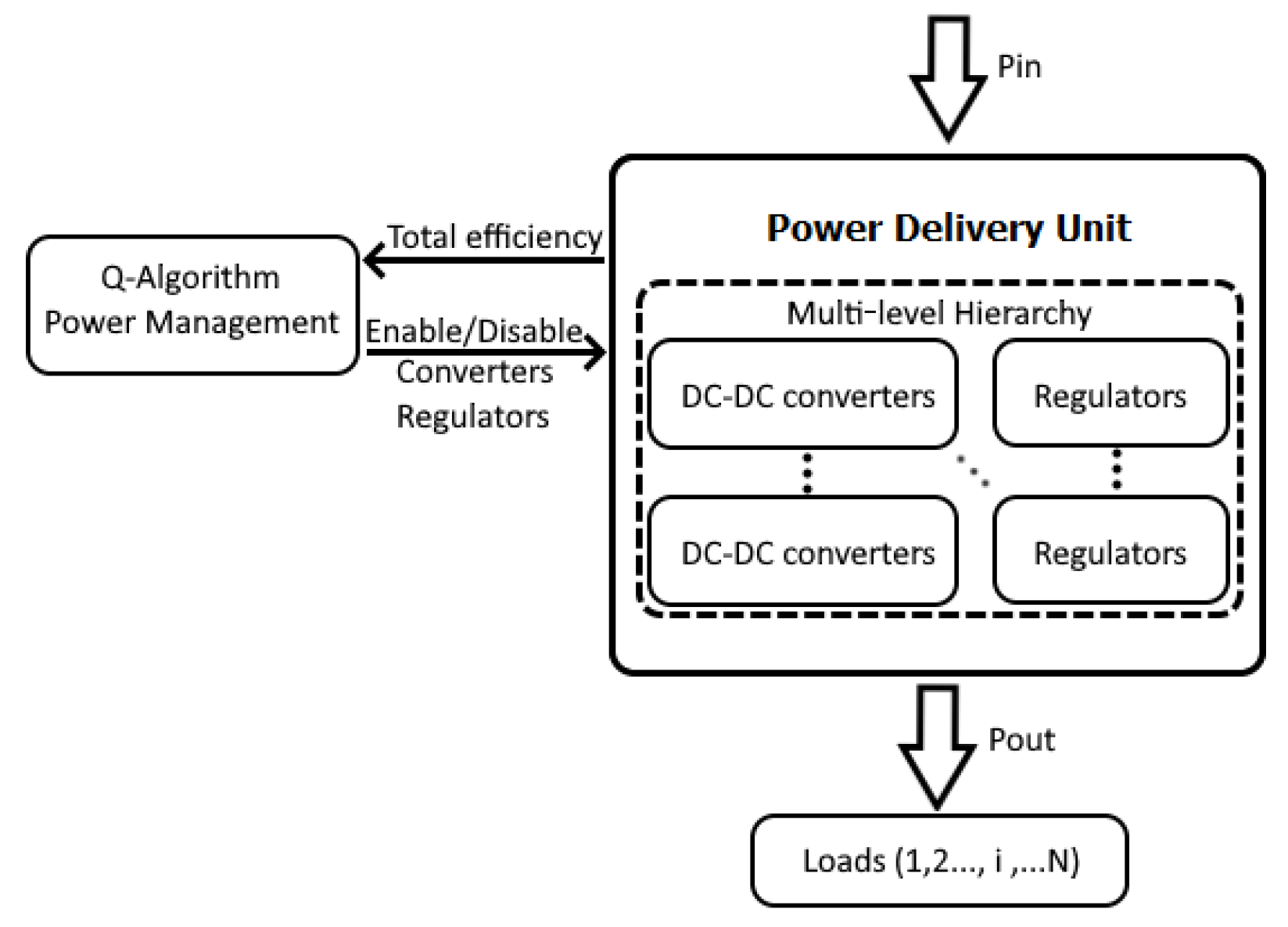 - Real-time optimization framework: We introduce a properly tailored Q-learning algorithm that adapts the system in real time to any combination of heterogeneous loads, determining an operating point that yields higher end-to-end power efficiency than current state-of-the-art methods.