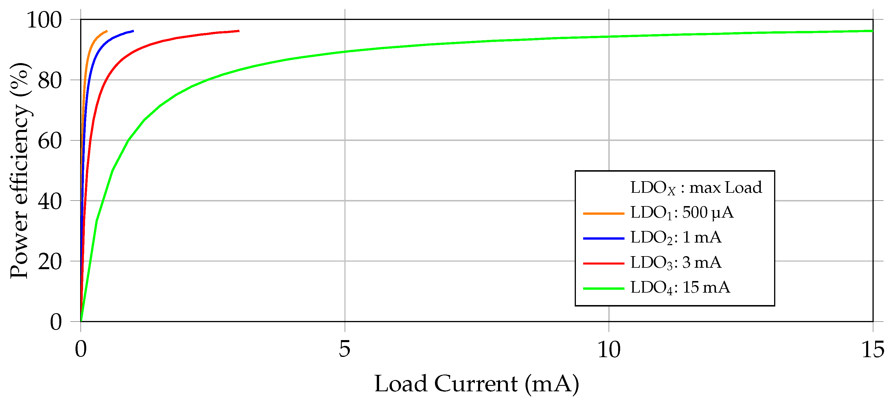 - The power efficiency of the available LDOs;
