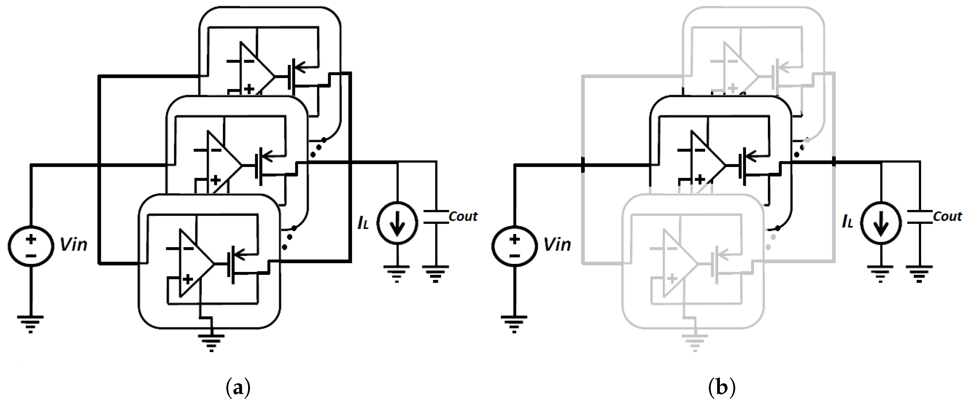 - Ciprut, A.; Friedman, E.G. On the Stability of Distributed On-Chip Low Dropout Regulators. In Proceedings of the IEEE International Midwest Symposium on Circuits and Systems, Boston, MA, USA, 6–9 August 2017; pp. 217–220. [Google Scholar] [CrossRef]