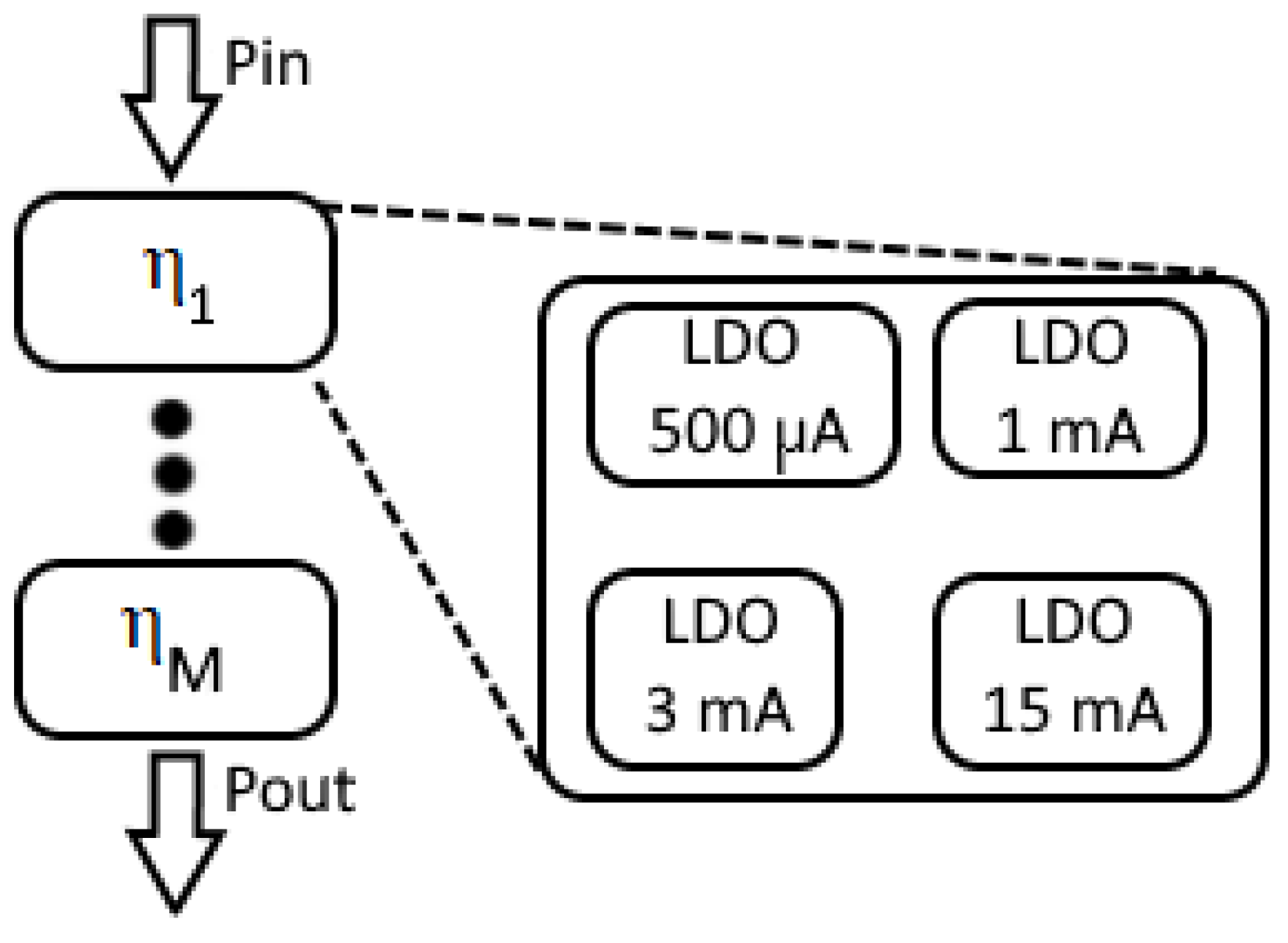 - Stability: The integration of power gating with a bounded number of regulators ensures the stability of the parallel LDO configuration while preserving the transient response required for fast wake-up modes.
