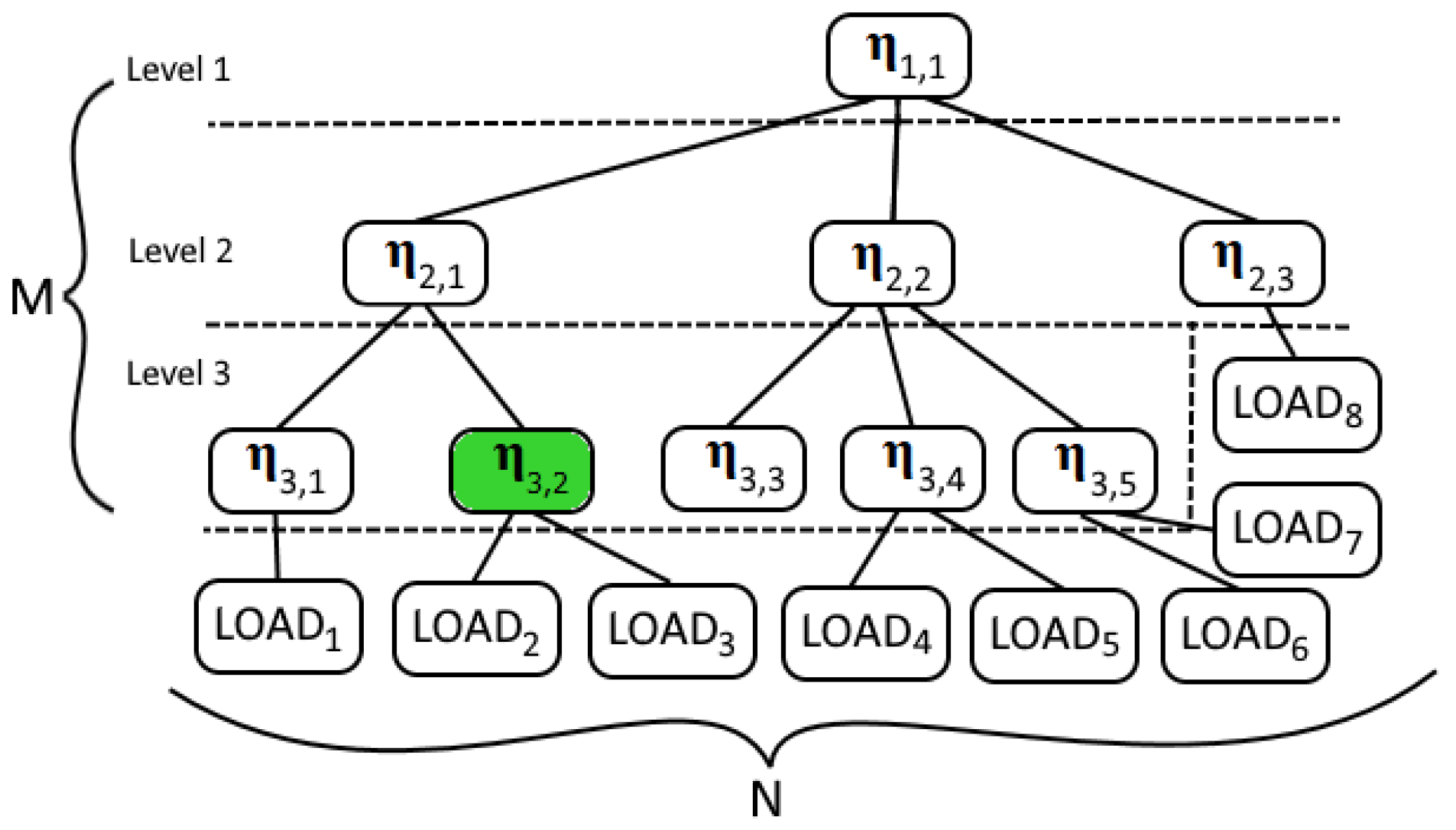 | System | Refers to the multi-level PDU, along with the loads connected to the PDU and the control block, which implements the Q-algorithm, as shown in Figure 1. |