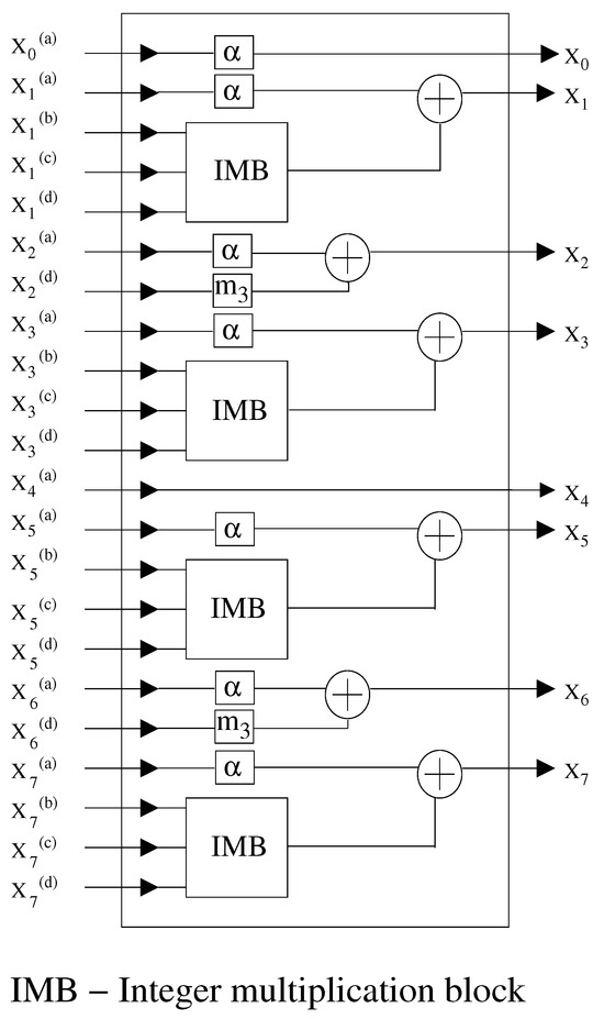 The above algorithms are realized using the proposed integer multiplication block (IMB) given in Figure 4.