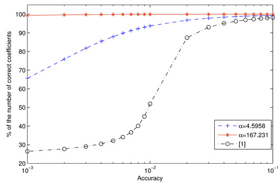 The results show that the design corresponding to the expansion factor exhibit a far superior accuracy than the other two designs. We found that of coefficients could fulfill an error ceiling of whereas the corresponding values for design and the design proposed in [1] are and , respectively. Comparing the latter two designs it can be seen that the expansion factor design shows much better accuracy compared with the design in [1].