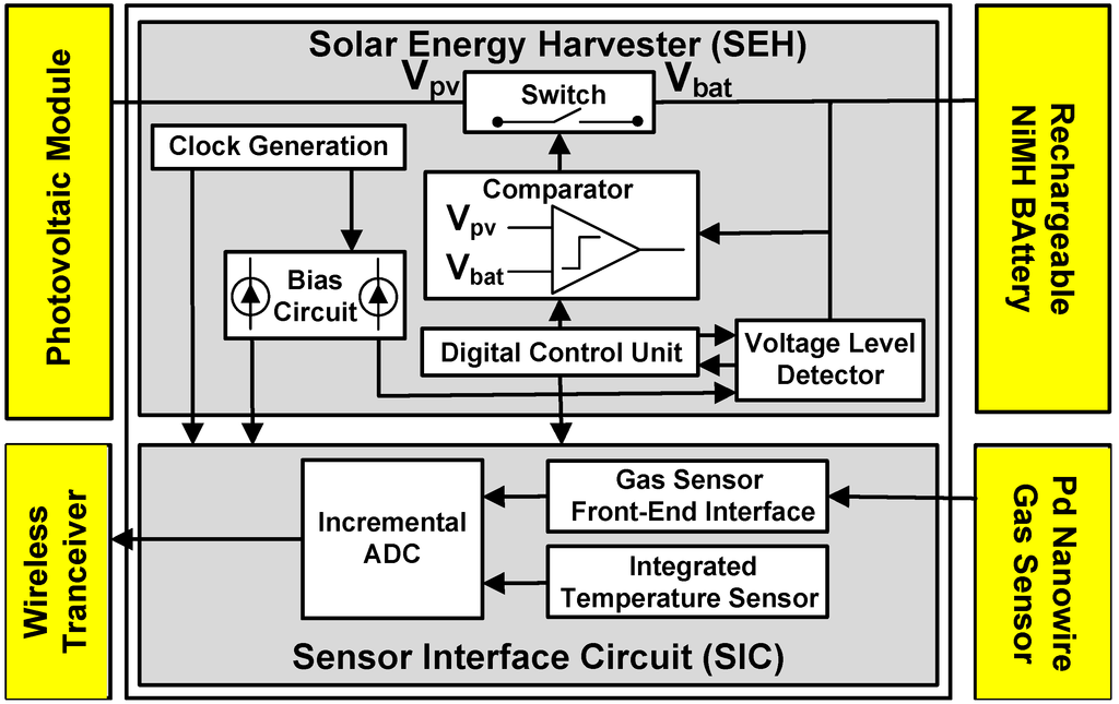 - Pour, N.K.; Krummenacher, F.; Kayal, M. A Miniaturized Autonomous Microsystem For Hydrogen Gas Sensing Applications. In Proceedings of IEEE 10th International New Circuits and Systems Conference, Montreal, Canada, 17–20 June 2012; pp. 201–204.