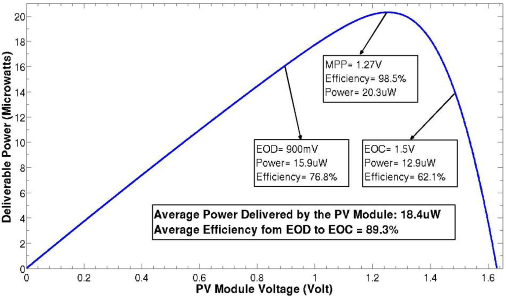 | Illumination Level | Vmpp (V) | Pmpp (µW) | Pcharge (µW) | Efficiency |