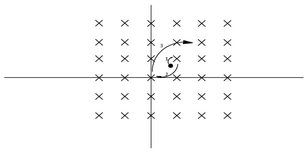 The crosses in Figure 1 represent the points in the lattice, while the black point is rounded to −1, which is the initial child in this example. The other candidates in the current layer will be based on the order as the Figure 1 shows. The constant k will determine the times of the jumping across the candidates. For the complex model used in this work, the order in two dimensions can be presented as Figure 2.