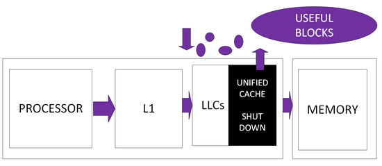 Some techniques use power gating to migrate blocks deemed useful to a live partition before shutting down the unused cache [20,27] as shown in Figure 7. Some techniques focus on hybridisation of Phase-Change Random Access Memory (PCRAM) and DRAM to introduce a bit of density to the PCRAM and cause less leakage consumption [28].