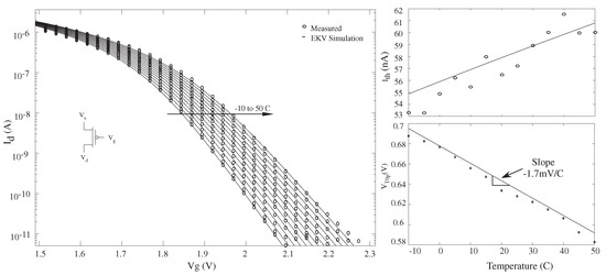 - Enz, C.C.; Krummenacher, F.; Vittoz, E.A. An analytical MOS transistor model valid in all regions of operation and dedicated to low-voltage and low-current applications. Anal. Integr. Circuits Signal Process. 1995, 8, 83–114. [Google Scholar] [CrossRef]