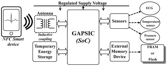 System overview of a passive tag developed using GAPSIC-SoC along with some external components.