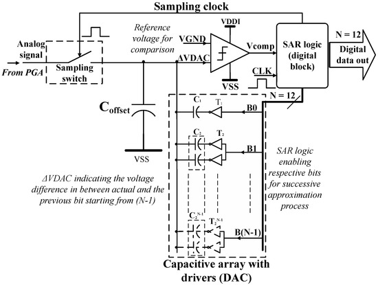 - Nandi, P.; Talukdar, H.; Kumar, D.; Kumar, A.; Katakwar, G. A Novel Approach to Design SAR-ADC: Design Partitioning Method. IEEE Tran. Comput.-Aided Des. Integr. Circuits Syst. 2016, 35, 1277–1287. [Google Scholar] [CrossRef]