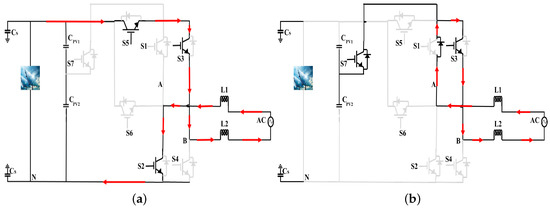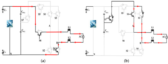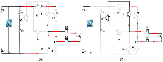 Operation modes of the proposed topology: (a) is negative and is positive; (b) the zero state during this interval.