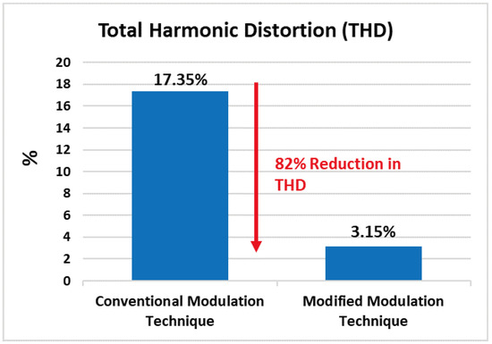 Total harmonic distortion (THD) of the proposed topology with the conventional and modified modulation technique.