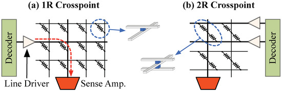 Illustrative examples of 1R (a) and 2R (b) crosspoint arrays.