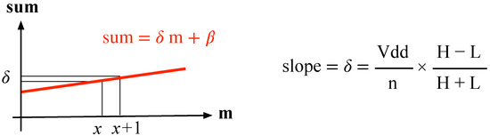 In a crosspoint array, every group of memory cells within a column are connected to a shared bitline. Figure 8 shows how the 2R memory cells can contribute in the bit-count operation. Every cell computes the binary XNOR between the corresponding elements of the filter and the input data (). All of the XNOR results are summed up along the bitline to produce an output voltage (). Notice that the binary outcome of every XNOR operation is a high or low voltage indicating 1 or 0. Regardless of the operand’s values, the high voltage (1) is produced for an XNOR operation only if is connected to the RRAM cell with low resistance; otherwise, a low voltage (0) appears at the output. For a bitline connected to n 2R cells, assume that m XNOR operations produce 1s in their outputs. The resultant bitline voltage can be computed by ; where, H and L are the amount of high and low resistances of the RRAM cells. The bitline voltage is linearly proportional to the number of 1s produced by the XNOR operations—i.e., the bit-count. By quantizing this voltage, the final binary value for a single convolution can be computed. For example, a comparator can be used to output a 1 if () and 0 otherwise.