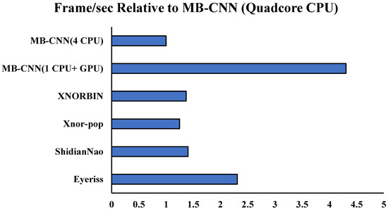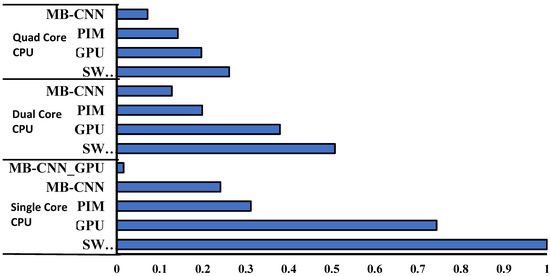 The proposed hardware accelerator can be integrated in both single- and multi-core mobile systems. We considered both systems for evaluations using the ESESC simulator [50] to model single- and multi-core out-of-order processors. All of the processor cores realized the MIPS64 ISA. We also considered GPU based and PIM-like ASIC accelerators for evaluating power and performance potentials of MB-CNN. For the GPU implementations, we considered the Nvidia Tegra X1 low power GPU platform with 256 cores [54]. The low power GPU was used to implement floating point convolutions in first and last layer of the end to end inference. We used Tegra X1 GPU for evaluation purposes only, which can be replaced by an efficient floating-point implementation run on CPU or any state-of-the-art low power GPU without incurring any performance impact. The GPU code was optimized to achieve high-performance similar to that of the industrial solution.