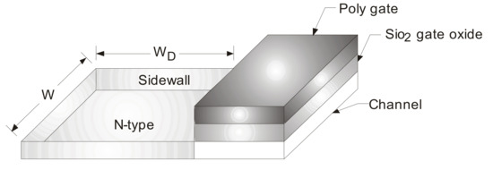 The number of fingers in a transistor and its capacitance can be analyzed from the three-dimensional (3D) transistor view of a MOS transistor, as shown in Figure 6.