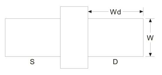Area of drain = AD1 = Area of source = AS1 = W × WD